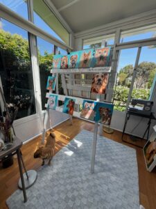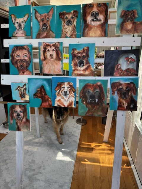 There will be a street event August 23rd on Montana Ave in Santa Monica. Please see the flyer and come to our in-person exhibit of the most recent series of oils on canvas … called TEETH, where all dogs feel and are beautiful and nobody is othered.